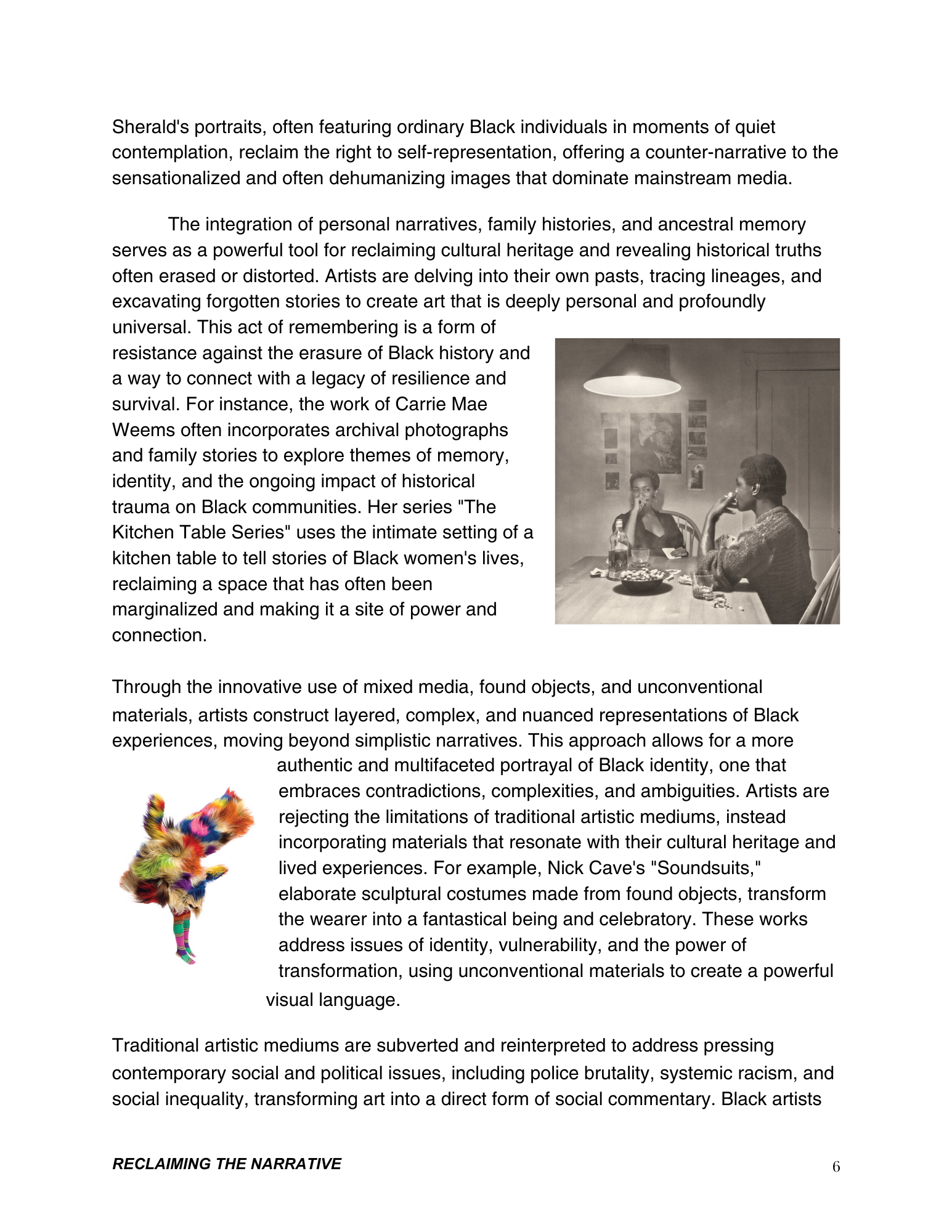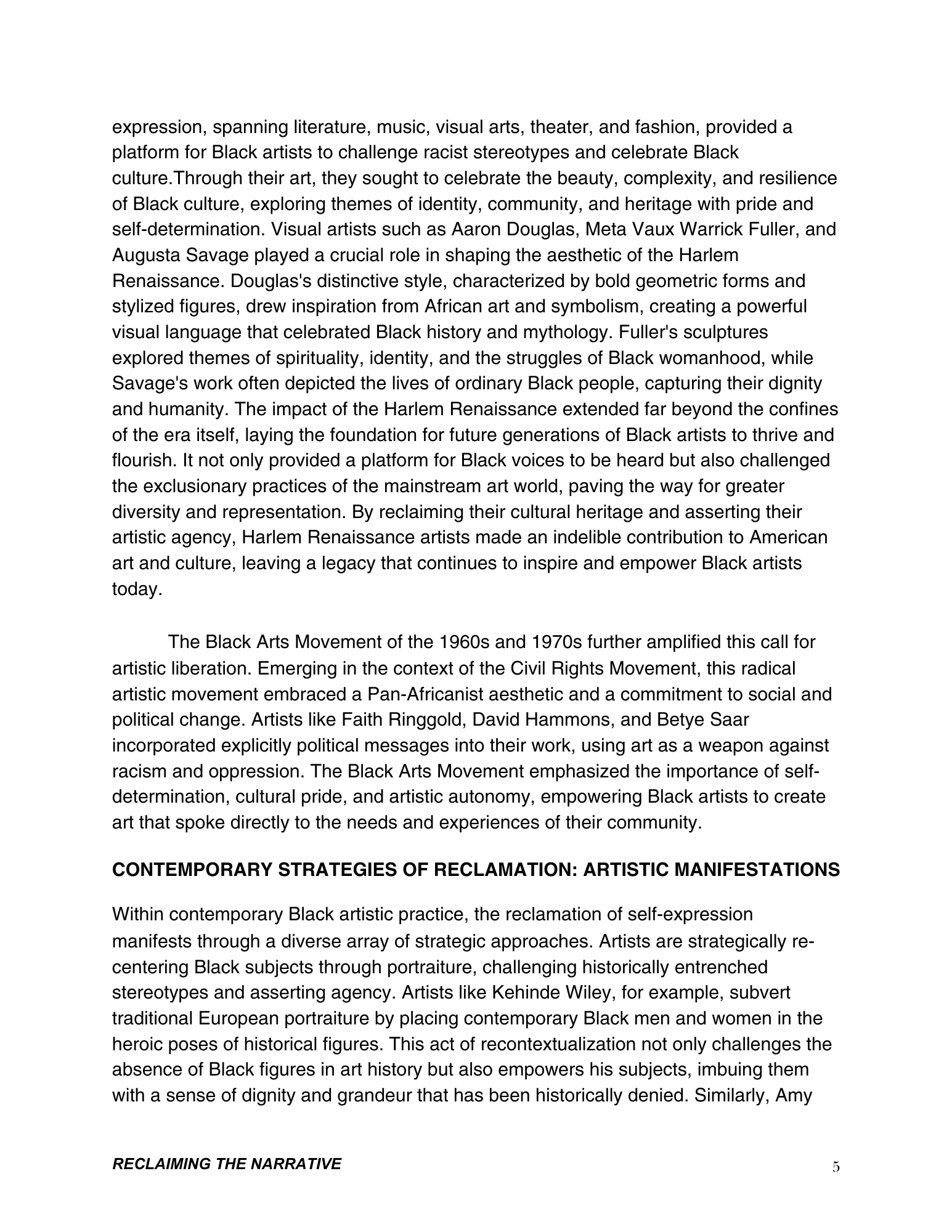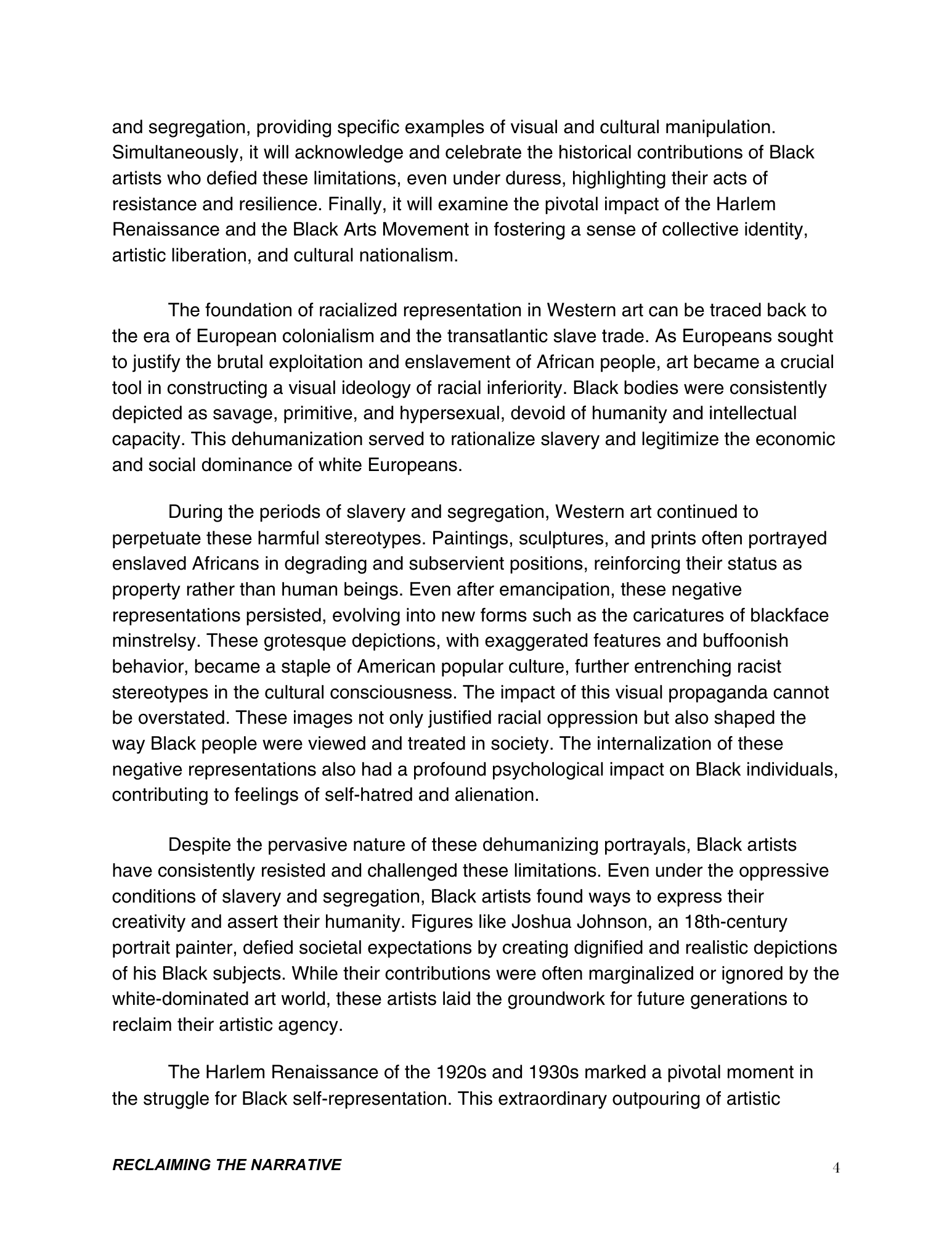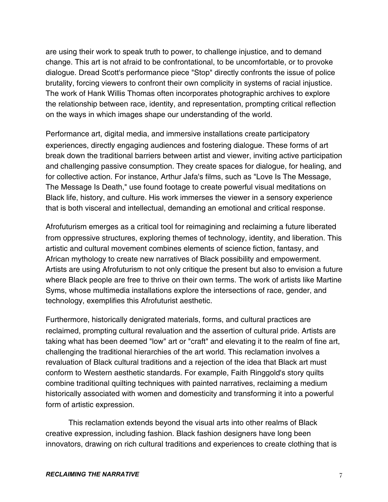 i've witnessed firsthand the profound power of art to amplify the silenced narratives of the black community. the weight of historical systemic oppression, from the deliberate erasure of black artists in canonical narratives to the visual perpetuation of harmful stereotypes, has profoundly impacted the ability of black artists to express their authentic selves. however, a powerful counter narrative is emerging. "reclamation," as i define it, is an active, ongoing, and multifaceted process through which black artists assert agency, visibility, and cultural representaion . contemporary black artists are at the forefront of this movement, courageously challenging established art world paradigms and dismantling oppressive structures . this reclamation involves not only the recovery of lost or marginalized histories but also a critical re-engagement with the visual language used to define and often denigrate blackness.